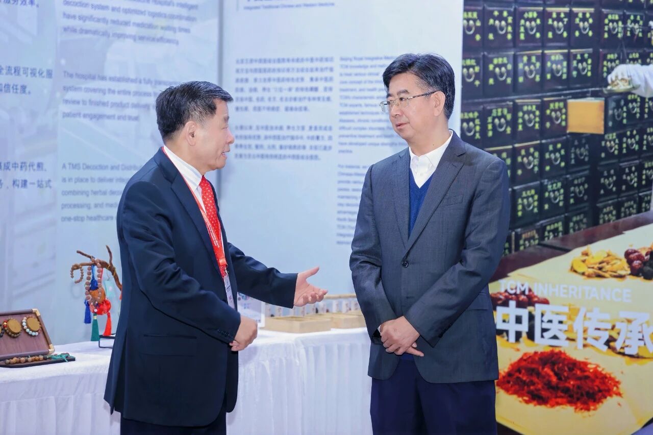 在王府医院展位,董事长和海南省气候治疗和康养协会会长吴岩峻交流