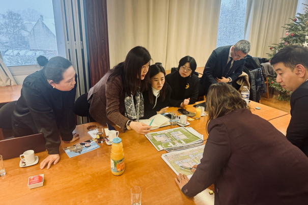 当地时间 1 月 5 日,法政集团副董事长兼行政总裁潘军女士受邀前往法国勒布朗-梅尼勒 (Le Blanc-Mesnil) 市政府,实地考察拟建设三语国际学校的园区选址,并与法国参议员蒂埃里·梅尼昂 (Thierry Meignen) 进行会面,深入了解当地政府对于拉莫莱特片区的整体改造规划。该片区将于 2033 年前打造为集教育、商业与绿色生活于一体的创新型宜居社区,三语学校作为核心教育设施之一,预计于 2028 年建成并投入使用。当天,集团还与学校设计方就校园布局、功能分区及文化融合等关键细节展开深入交流。