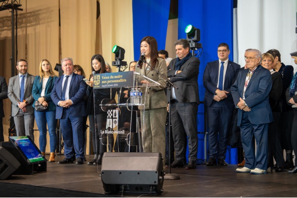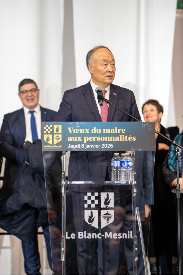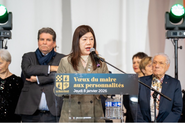 当地时间 1 月 8 日,潘军女士受邀出席法国勒布朗-梅尼勒 (Le Blanc-Mesnil) 市政府举办的 「市长向社会各界代表致新年祝词仪式」 (Vœux du maire aux personnalités),在众多政商界嘉宾与市民代表见证下,介绍该教育项目的远景目标,并表达了集团对深化中法合作的信心与愿景。