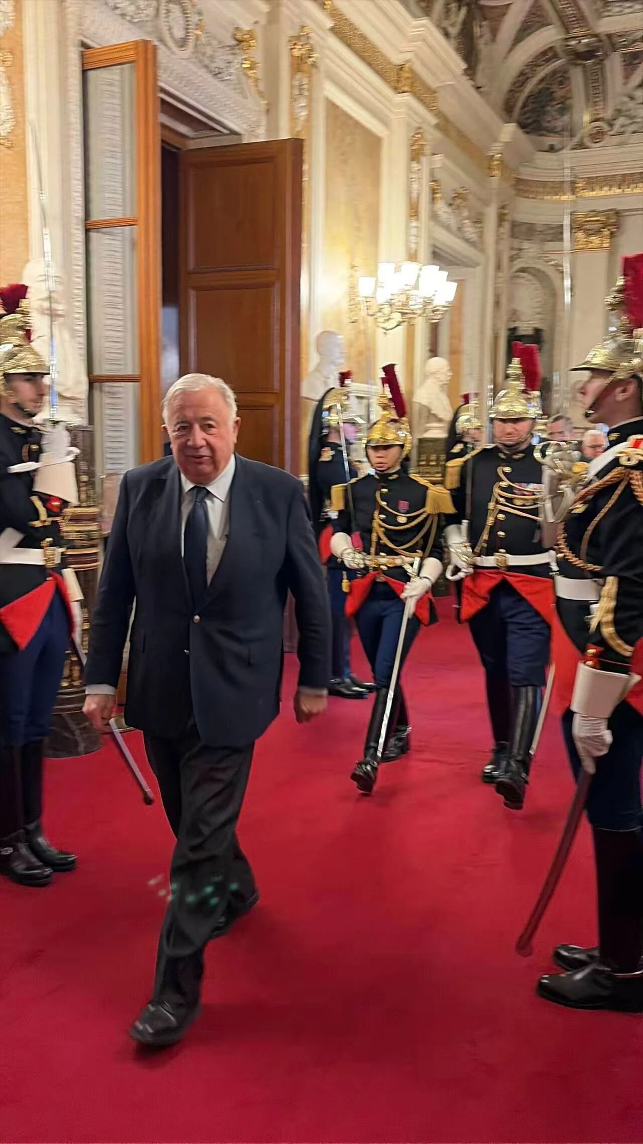 1 月 7 日下午,潘军女士受邀走进参议院观礼席,现场观摩议员对法国总理及部长内阁的质询辩论环节,近距离感受法国议会政治运作。活动间隙,潘军女士与法国共和党主席、前内政部长布鲁诺·勒泰约 (Bruno Retailleau) 及多位法国政要简要会晤,介绍集团在教育、医疗等方面的国际合作项目,围绕 「以人文交流促进制度互信」 的理念达成高度共识。