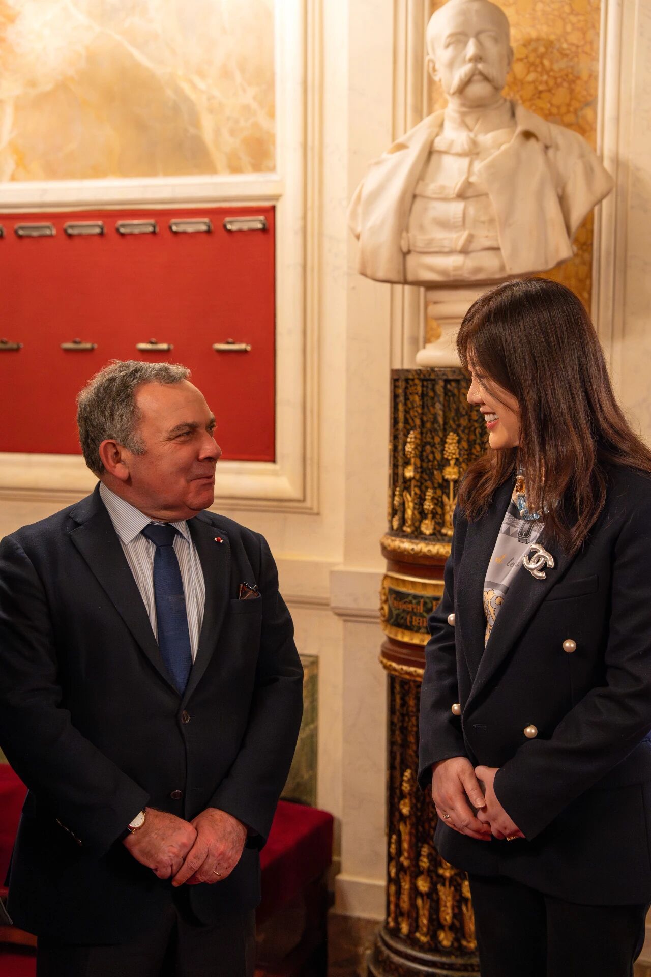 当地时间 1 月 7 日上午,潘军女士应法国参议员、勒布朗-梅尼勒市议会多数派领袖蒂埃里·梅涅 (Thierry Meignen) 邀请前往法国参议院,实地了解参议院的制度架构与立法机制,并就法政集团在法开展的三语国际学校建设及中法医疗合作项目,与梅涅议员展开工作会谈。