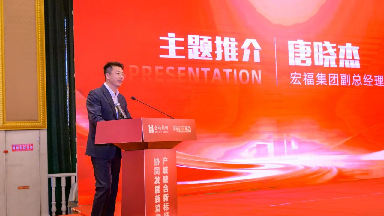 随着王广发董事长与黄福水主席在协议书上郑重落笔,现场气氛推向高潮,双方全方位的战略合作伙伴关系正式启动。紧接着,宏福集团副总经理唐晓杰在报告中细化了合作路径,提出通过资源整合共建 「教育城」 、 「银发城」 与 「医药产业园」 三大支柱,推动法政优质资源与宏福载体深度耦合,实现从人才培养、医康养结合到产研转化的全产业链闭环。
