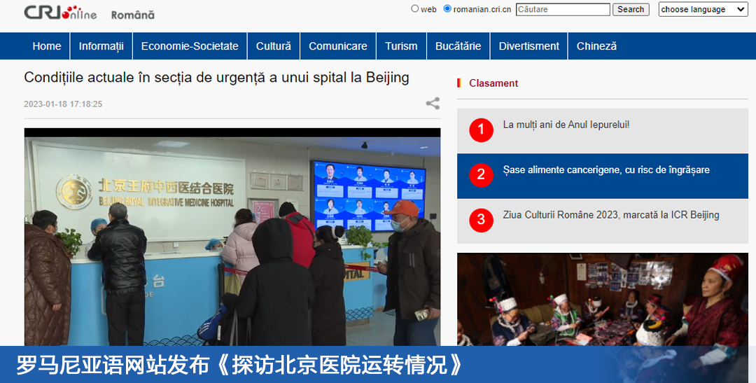 2023 年 1 月 13 日,中央广播电视总台欧洲拉美地区语言节目中心多语部记者前往北京王府中西医结合医院,围绕中国疫情政策调整后医疗保障情况开展采访报道,并编译成希腊语、葡萄牙语、罗马尼亚语、波兰语、德语…